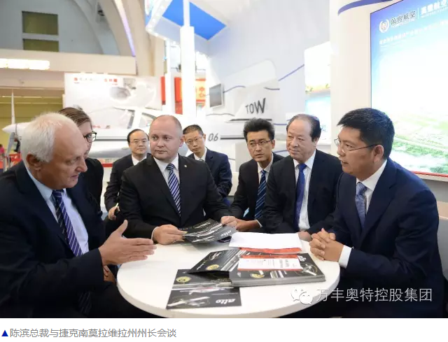 ? ? ? 萬豐奧特控股集團作為中國高端品牌企業代表特邀參展,旗下萬豐航空工業有限公司攜飛機整機亮相展會,驚艷全場,受到了捷、中政府高層領導以及參展商的高度贊譽。捷克共和國總統、總理、捷克政府有關部長、南莫拉維拉州州長和中國貿促會會長姜增偉、浙江省委書記夏寶龍、浙江省商務廳廳長周日星、紹興市委書記彭佳學等領導分別到萬豐展區視察指導。
