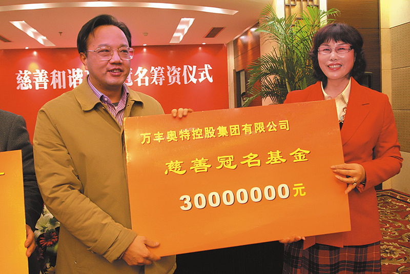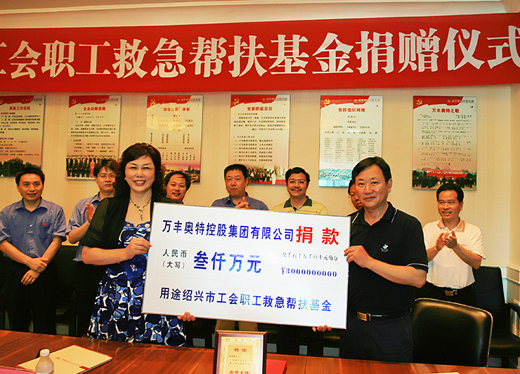 董事局主席陳愛蓮女士個人出資3000萬元,設立了浙江省首個美麗鄉村建設基金,年滿60歲以上的老人、入學的兒童、考入大學的學子以及喜結良緣的夫妻,每年都能享受到“長壽金、優學金、幸福金”。